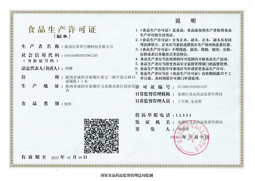 本公司現(xiàn)已與多所科研院緊密合作,公司擁有配套完整的提取、分離、萃取、柱層析、濃縮干燥等設(shè)備和技術(shù),具有豐富的生產(chǎn)天然植物提取物的經(jīng)驗(yàn)和嚴(yán)格的質(zhì)量控制體系。陜西百草萃生物科技有限公司為廣大消費(fèi)著和客戶(hù)提供安全、健康、品質(zhì)高、能效強(qiáng)的營(yíng)養(yǎng)健康品,主營(yíng)產(chǎn)品包括:國(guó)食健字鋅硒寶、鋅硒寶、欣寶兒童鋅硒寶、復(fù)合鋅硒片、復(fù)合蛋白鋅、千凈顆粒、蛋白乳鐵片、瑪咖復(fù)合片等、廠(chǎng)家占地五十余畝,廠(chǎng)家建筑面積4000余m2,內(nèi)設(shè)生產(chǎn)車(chē)間、質(zhì)量控制室、產(chǎn)品檢測(cè)中心、陰涼倉(cāng)庫(kù)、..